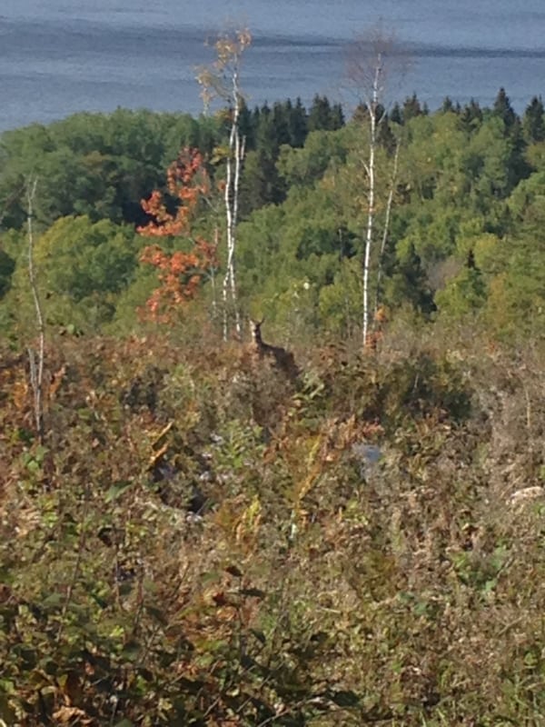 We spent 3 weekends moose hunting this year in Saint-Michel des Saints, two with bow and arrow and one with rifle. We did not have any luck. There were at least 3 or 4 different bears that were feeding on the grassy hills on our territory. It was a poor year for bears in terms of available food so they were spending a lot of time eating grass. Although he had moose tracks at our salt licks all summer they stopped coming around just before hunting season.